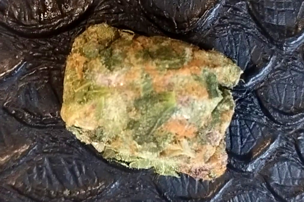 Квадратик плотный, внутри помягче. На солнце — просто огонь, переливается. Цвет 50/50: зелёный с коричневым. Кристаллы, завитки — всё как я люблю. Запах средней интенсивности, хвоя с землёй. Общий букет тоже прикольный, ответ все равно тяжестью смол